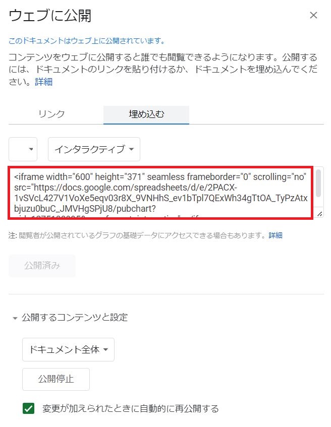 <iframe class="sp" width="391" height="241" seamless frameborder="0" scrolling="no" src="https://docs.google.com/spreadsheets/d/e/2PACX-1vSVcL427V1VoXe5eqv03r8X_9VNHhS_ev1bTpl7QExWh34gTtOA_TyPzAtxbjuzu0buC_JMVHgSPjU8/pubchart?oid=1646547738&format=interactive"></iframe>CSSの切り替えコード追加